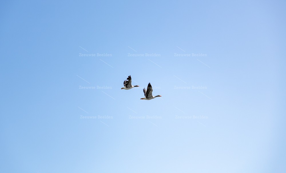 Twee vliegende ganzen in een vlucht op een prachtige dag
