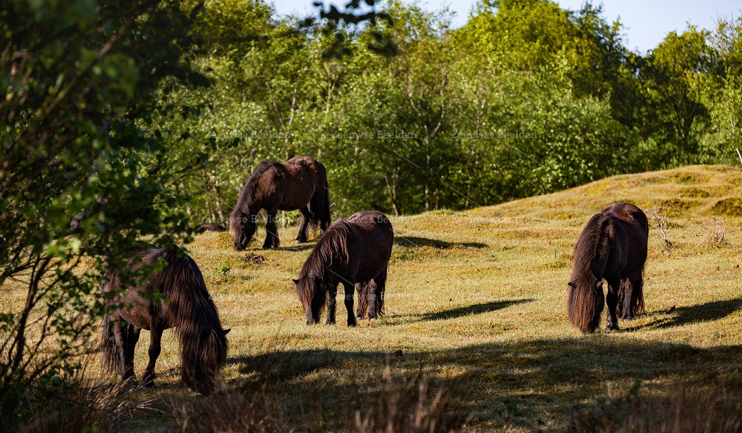 Bij Westenschouwen is een uitgestrekt duinlandschap te vinden, hier zijn veel verschillende wilde Dieren te vinden zo ook deze grazende Shetlandpony’s.