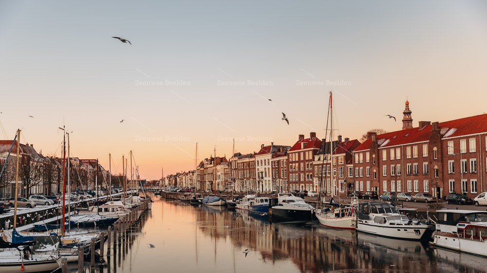 Bootjes liggen te dobberen in de winterse haven van Middelburg