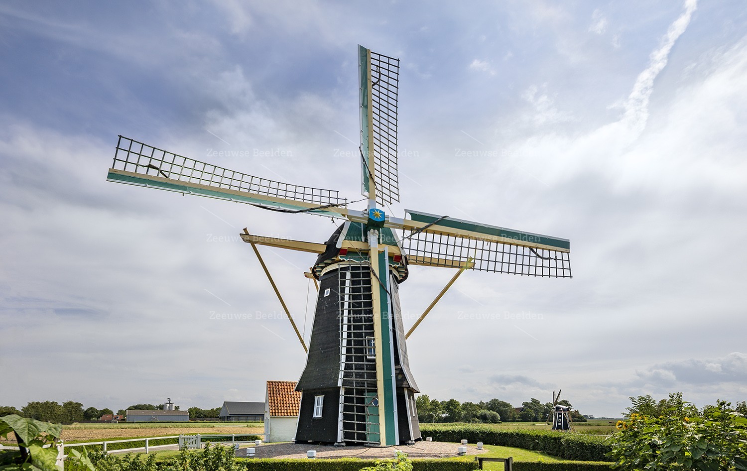 Zeeland staat vol molens, deze molen staat in Aagtekerke. Op de achtergrond is nog een kleine molen te vinden.