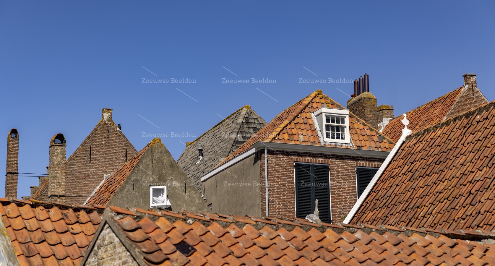 Oude huisjes met oranje daken in Veere