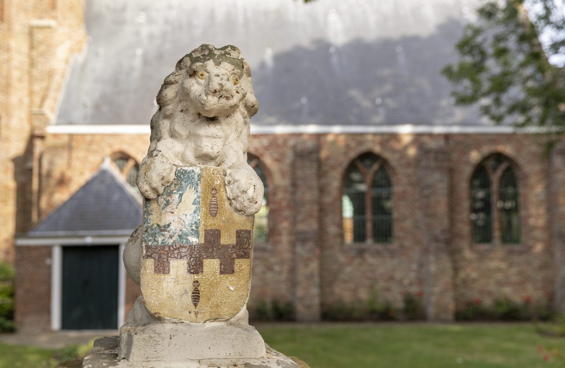 Beeldje van een leeuw voor een kerk op Walcheren