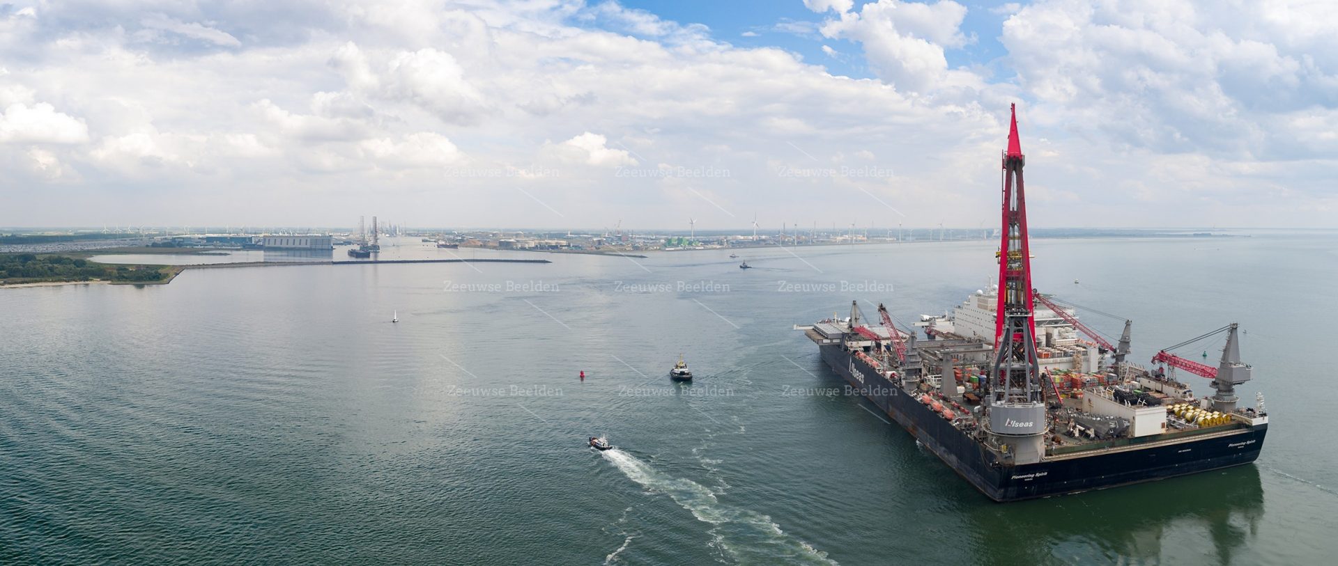 Allseas Pioneering Spirit is het grootste werkschip ter wereld en vaart hier de haven van Vlissingen in.