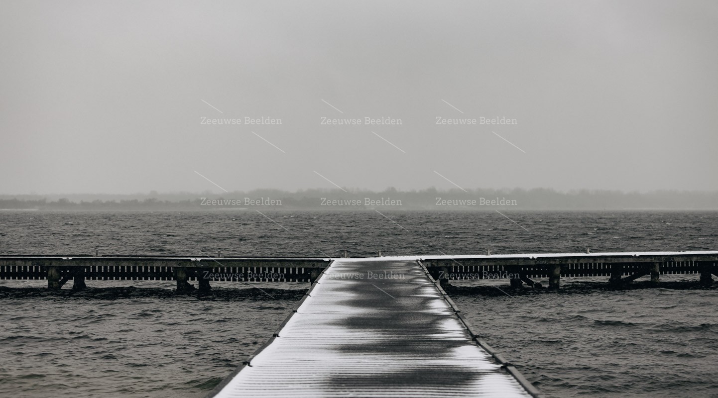 Besneeuwde steiger Veerse Meer