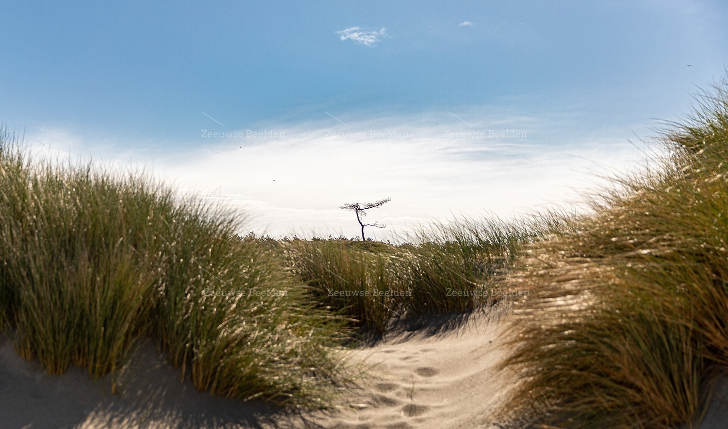 Duingebied Westenschouwen met deze bijzondere boom in het midden
