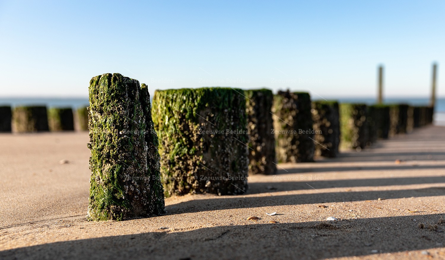 Diep onder het zand zit de rest van deze strandpalen verstopt.