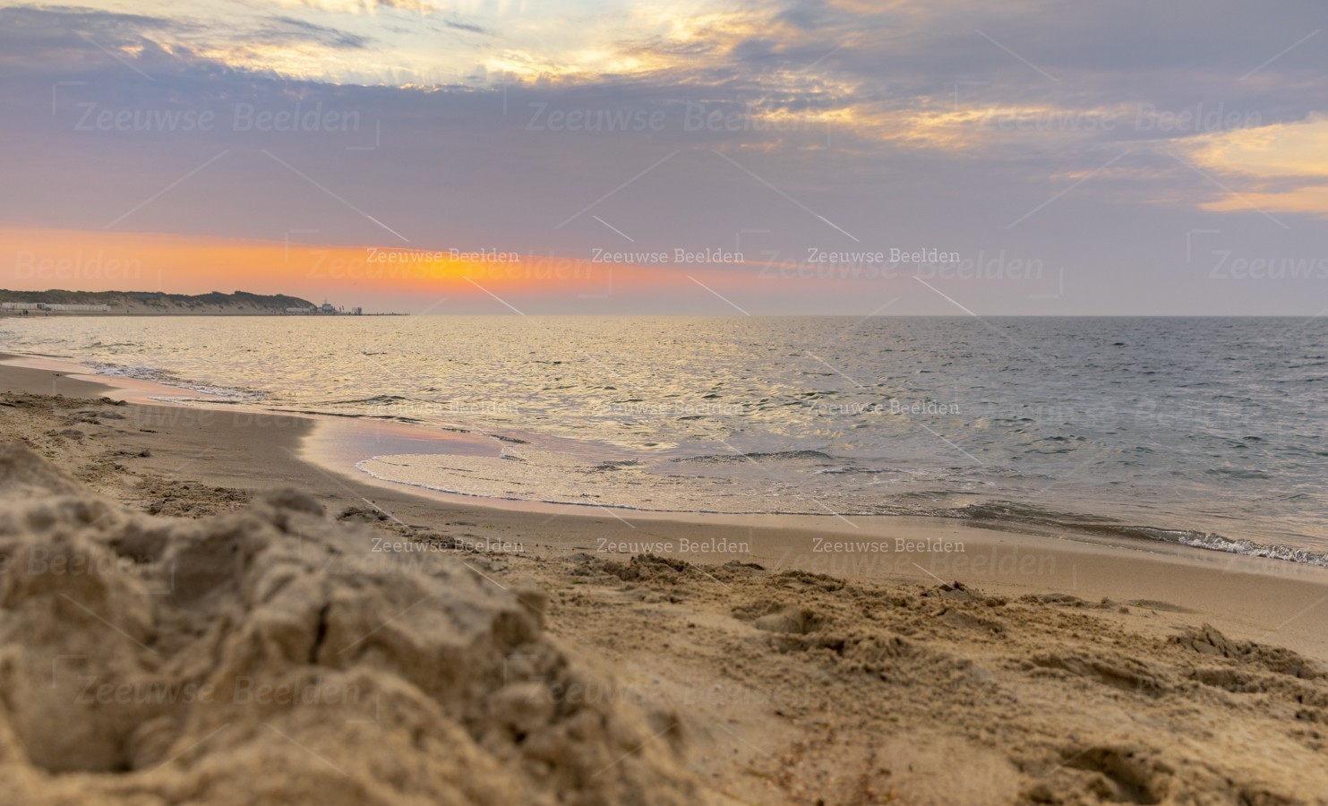 Gekleurde lucht op het strand van Vrouwenpolder tijdens de ondergaande zon